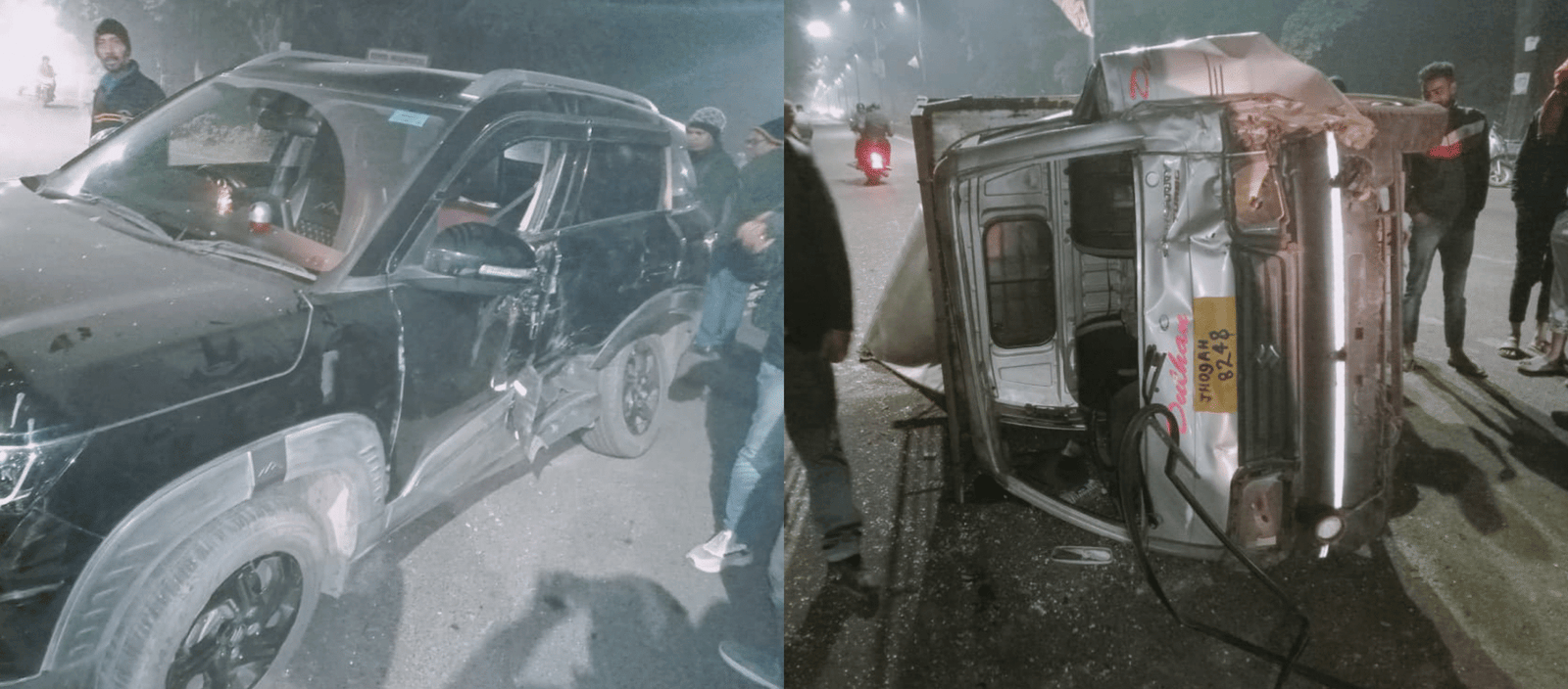 - टक्कर इतनी जबरदस्त थी कि दोनों वाहन विपरीत दिशा में घूम गए, और सुपर कैरी उलटकर पलट गई।